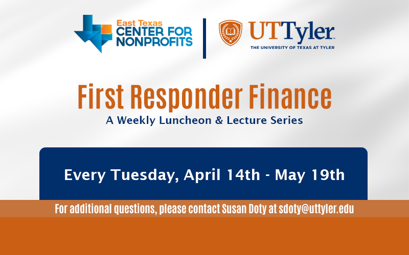 Calling all non-profit professionals! We invite you to join us starting Tuesday, April 14th, for a weekly Lunch & Learn led by Susan Doty, founding and executive director of the Center for Economic Education and Financial Literacy at UT Tyler.